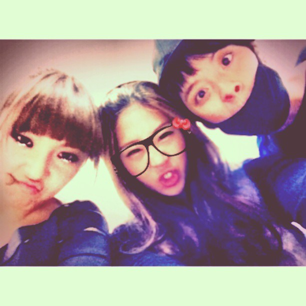 “He’s not just a relative but my brother~^^ Our baby(,) our maknae♥ I wore the raincoat Jiyoung noona bought me!!!! But it’s not raining….”